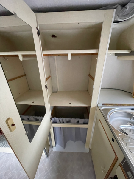 Has the original factory option of grey blinds, for some reason these are the best blinds ever fitted to an Eriba. They still run smooth and better than any others, past or present. The general fit-out is top quality and very 'retro'.
