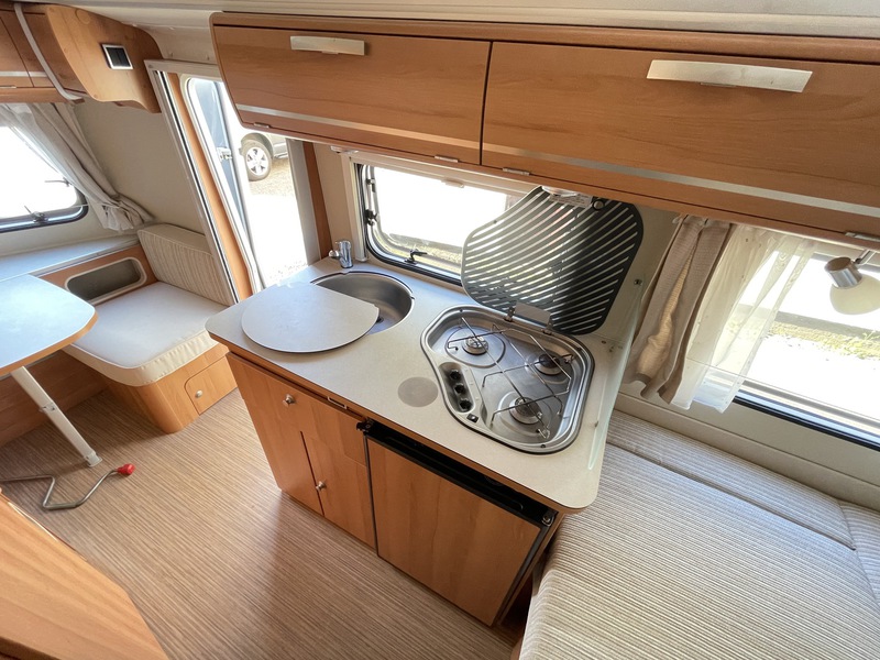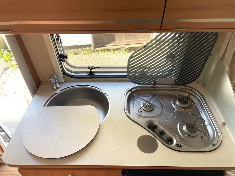 locks, waist container, hook-up cable, Calor gas bottle, onboard fresh water tank, water heater, external mains power point.